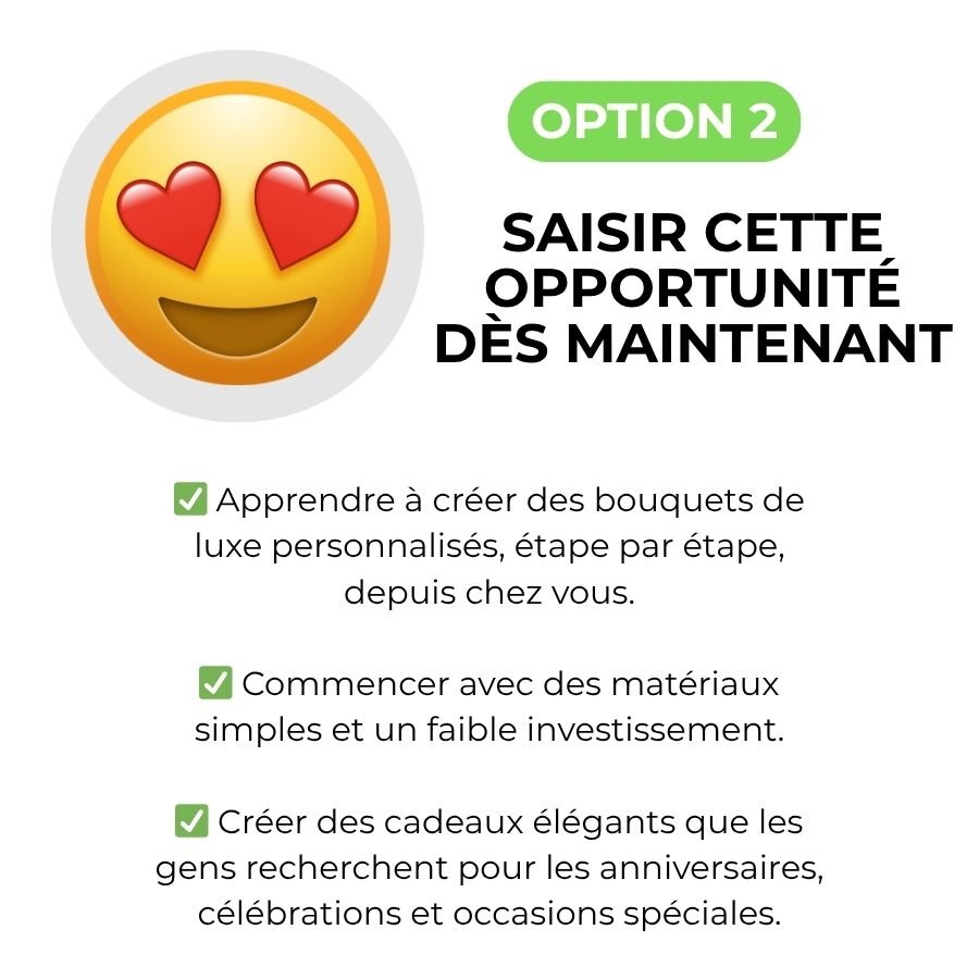 ✅ Pour celles qui veulent apprendre à créer des bouquets de luxe personnalisés depuis chez elles, même en partant de zéro.